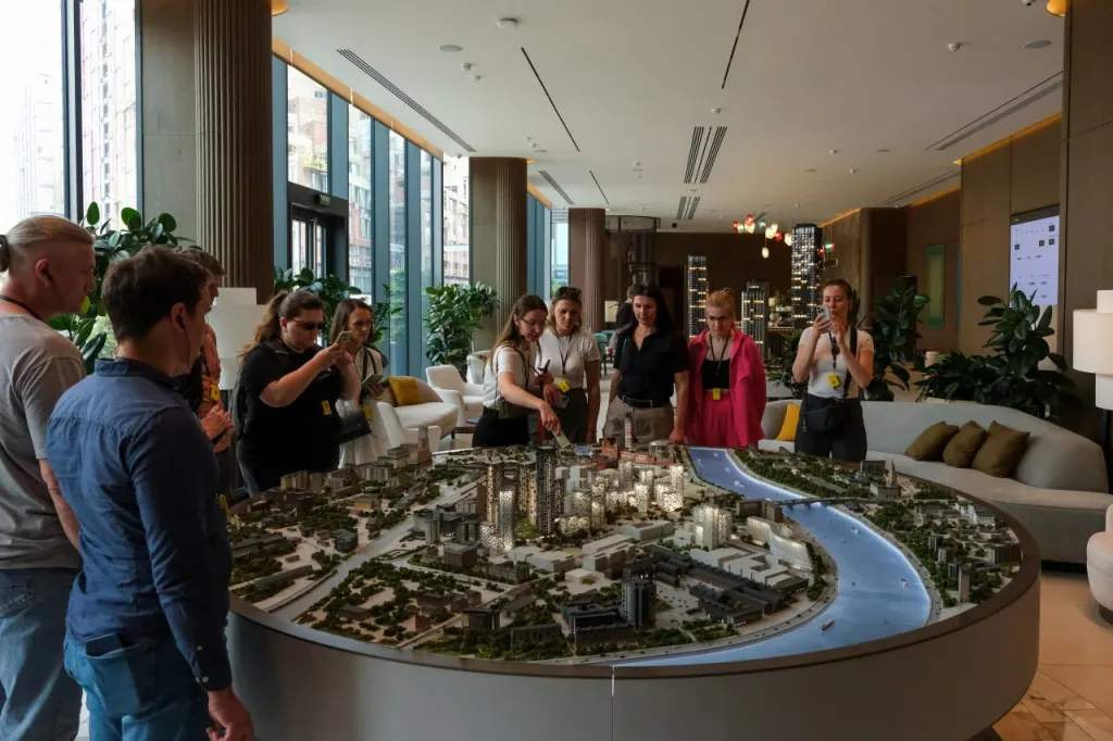 Первая часть тура прошла в районе Павелецкого вокзала с обзорными экскурсиями жилых комплексов I’M, Voxhall, High Life, Opus и других, а еще отеля Glenver Garden и делового квартала «Новоспасский двор». Вторая часть состоялась в Хамовниках. Здесь сотрудники холдинга в деталях познакомились с жилым комплексом «Садовые кварталы», побывали в Savvin River Residence, «Бродском» и White Khamovniki.