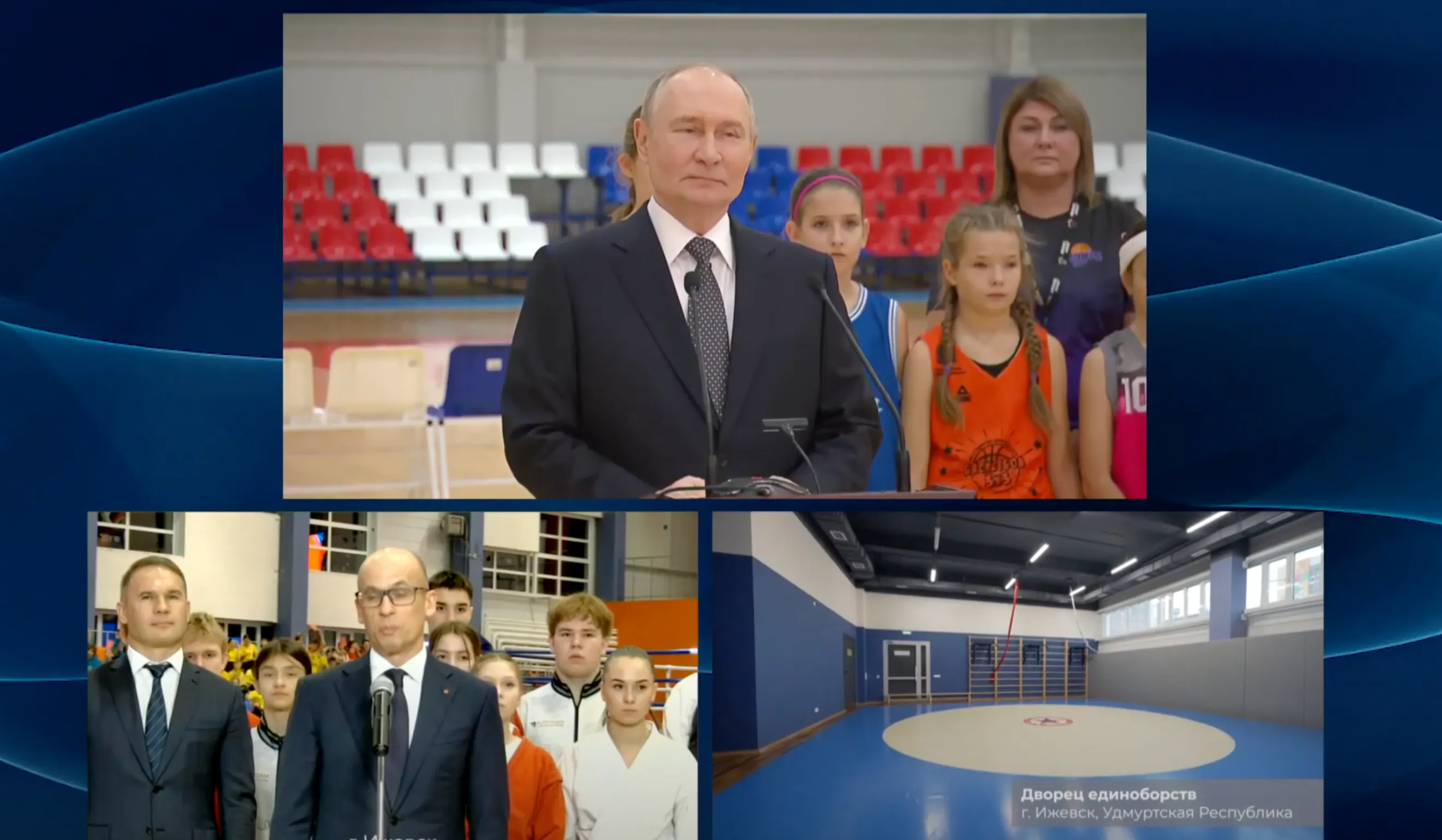 С приветственным словом к участникам церемонии открытия по видеосвязи обратился Президент Российской Федерации Владимир Путин. Глава государства поздравил всех жителей Удмуртии с открытием нового спортивного объекта и поблагодарил инвестора, генерального директора холдинга UDS group Алексея Чулкина, за участие в строительстве многофункционального комплекса, отметив, что такие представители бизнеса, которые искренне, от души и с удовольствием занимаются благотворительной деятельностью и поддерживают спорт, молодых людей и заслуженных атлетов — опора страны.